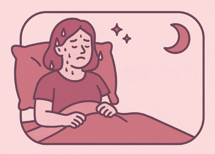 Sudden waves of heat at night that disrupt sleep, a common result of shifting hormones.